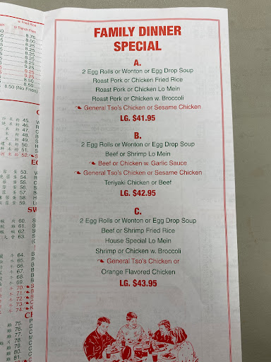 For those seeking a hearty meal, the Combo Plates are a great choice, offering an all-day dinner experience. These combos are generously served with Pork Fried Rice and a regular Egg Roll, making them an ideal choice for a satisfying meal. You can choose from options like Chicken or Roast Pork Chow Mein, Chicken with Broccoli, or the ever-popular Shrimp Chow Mein. The Roast Pork Lo Mein and Chicken Lo Mein are also crowd favorites, featuring savory stir-fried noodles with fresh ingredients.